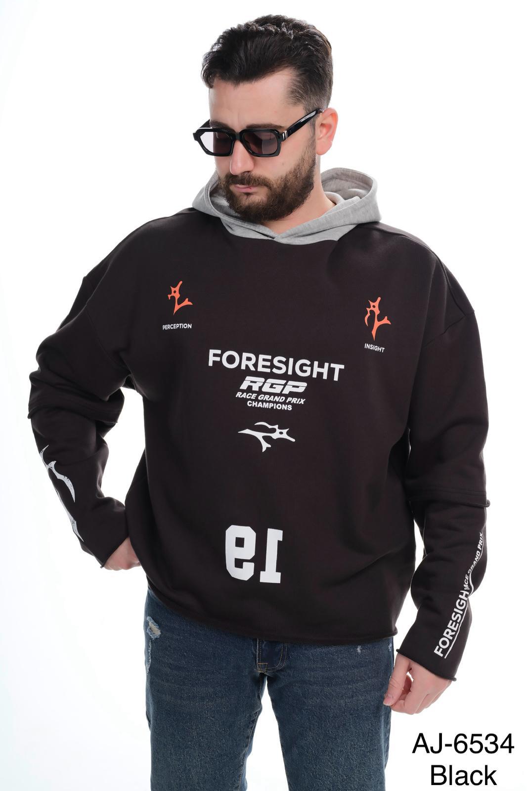 Mens Oversized Printed Hoodie Black Graphic 6534