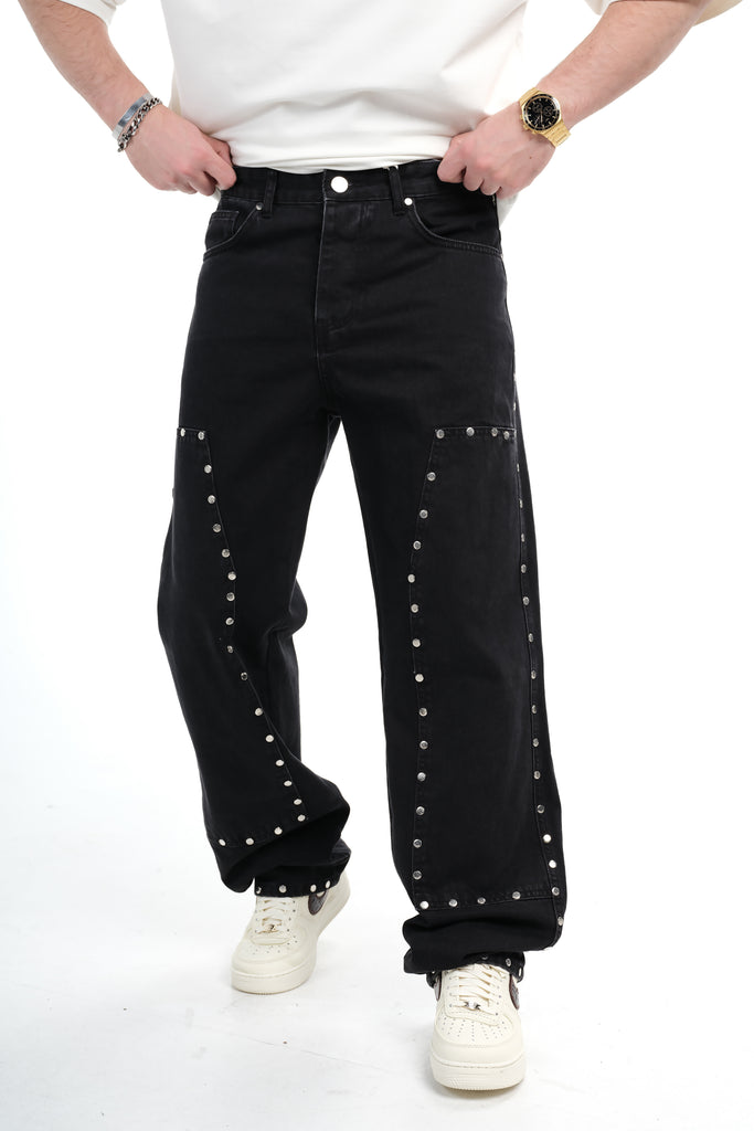 Upgrade your streetwear style with these Men’s Studded Wide Leg Black Denim Jeans, designed for a bold, modern, and edgy look. Made from high-quality denim, these pants feature metal stud detailing, a relaxed wide-leg fit, and a vintage-inspired silhouette, making them the perfect statement piece for everyday wear.