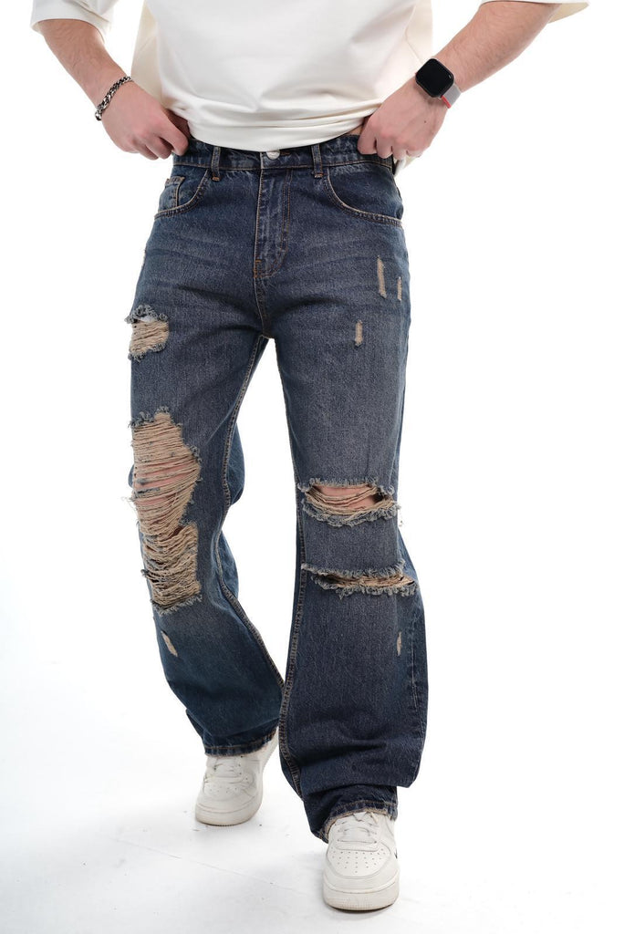 Upgrade your streetwear rotation with these Men’s Heavy Distressed Ripped Denim Jeans, designed for a bold and rugged statement. Featuring dramatic shredded holes, frayed textures, and a vintage dark-blue wash, these jeans deliver a raw street look perfect for everyday styling.