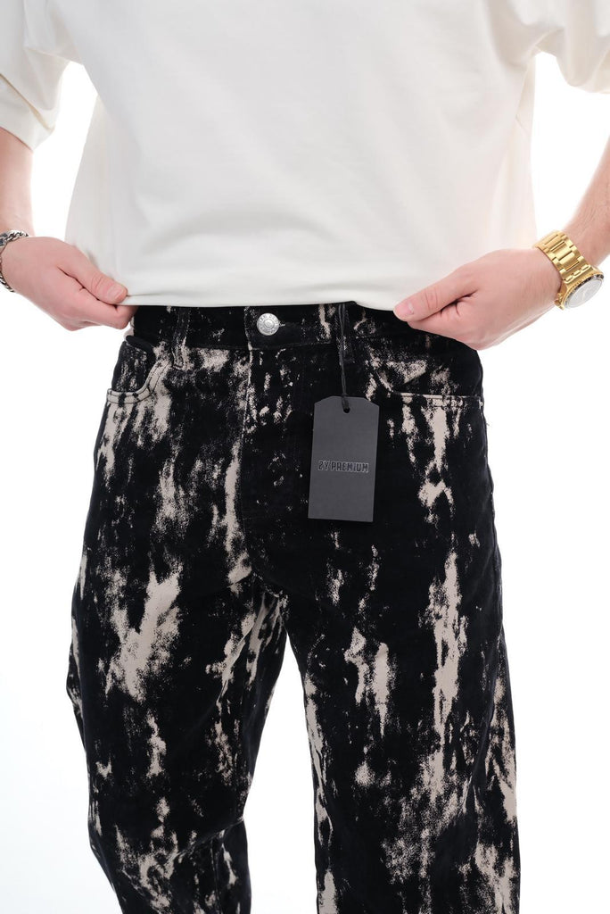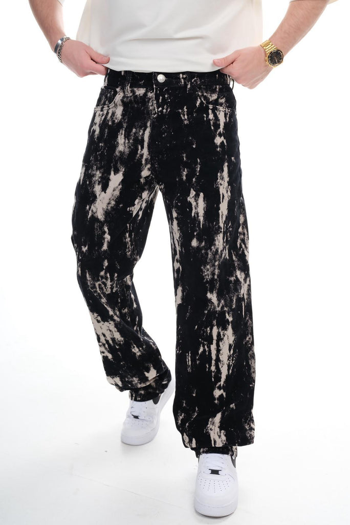 Make a bold impression with these Men’s Black Acid-Wash Straight Leg Jeans, designed with a striking black splatter pattern that brings an artistic, edgy vibe to your outfit. This standout denim offers both comfort and unique style, making it a perfect piece for modern streetwear lovers.