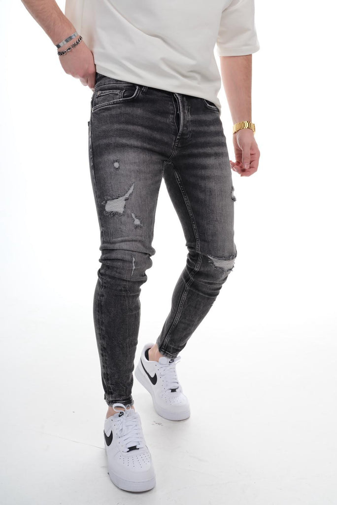 Upgrade your everyday style with these Mens Black Ripped Skinny Jeans, designed for a sharp, modern silhouette. The stretchy denim structure hugs the legs comfortably while maintaining full freedom of movement. Featuring distressed details and a washed black tone, these jeans deliver a bold streetwear edge without sacrificing comfort.