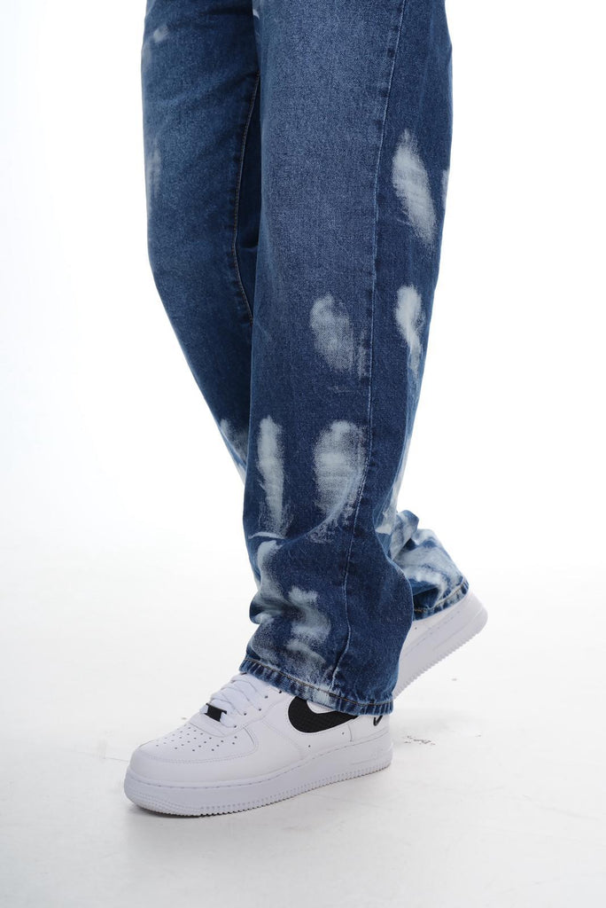 Bring bold energy to your streetwear with these Men’s Bleached Effect Wide Leg Denim Jeans. The dramatic bleached patterns on deep blue denim create a standout look that instantly elevates any casual outfit. Designed with a wide-leg cut, this jean offers both comfort and confident style.