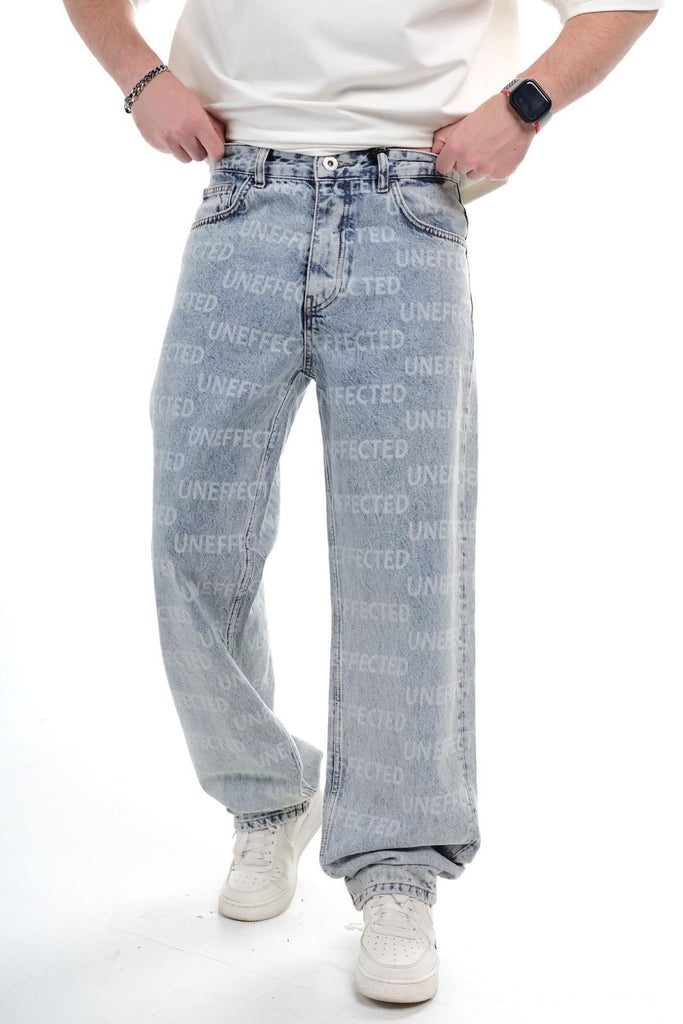 Enhance your streetwear rotation with these Men’s All-Over Printed Light Blue Baggy Jeans, featuring the bold “UNEFFECTED” repeating print. Designed for comfort, style, and modern oversized aesthetics, these jeans bring statement-making energy to any outfit.
