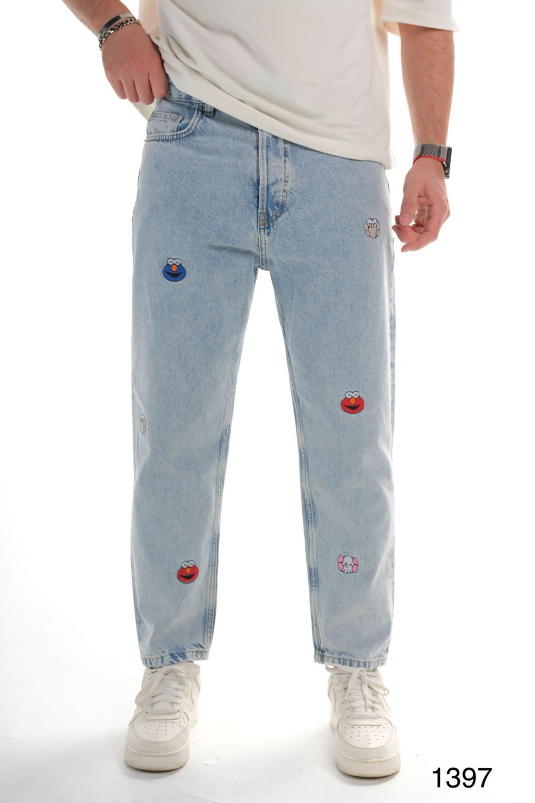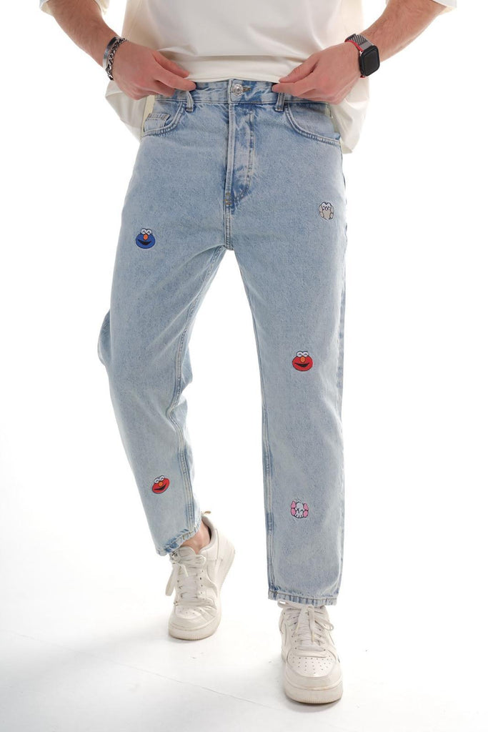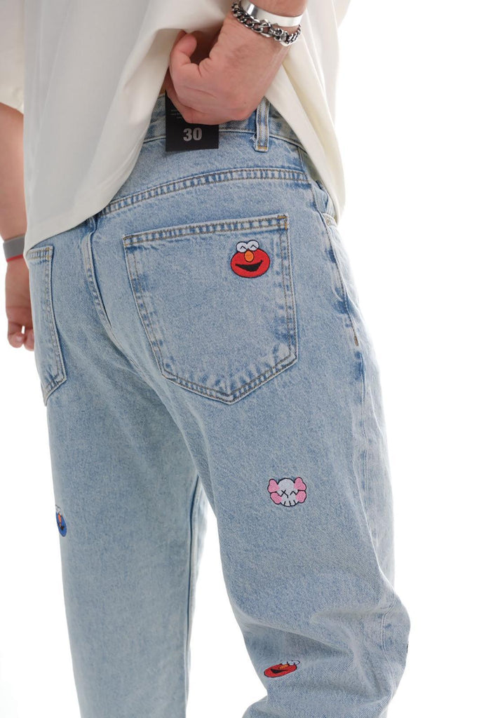 Bring a playful twist to classic denim style with these Men’s Light Blue Relaxed Fit Jeans featuring eye-catching embroidered cartoon patches. Designed for comfort, personality, and everyday wear, this denim adds a fun artistic edge to your streetwear look.