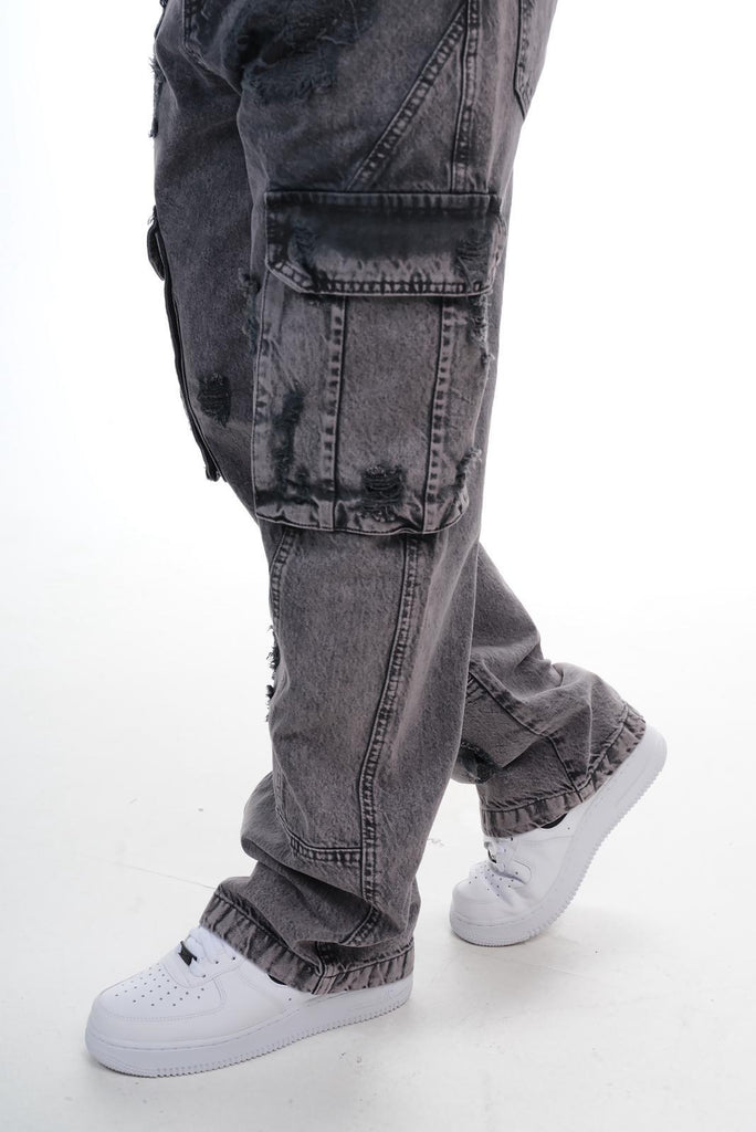 Upgrade your streetwear rotation with these Washed Black Cargo Jeans, designed with heavy distressing and oversized utility pockets. The washed charcoal tone and rugged destroyed details give these jeans a bold, urban edge while keeping comfort in focus. Perfect for everyday wear, casual outfits, and modern street style.