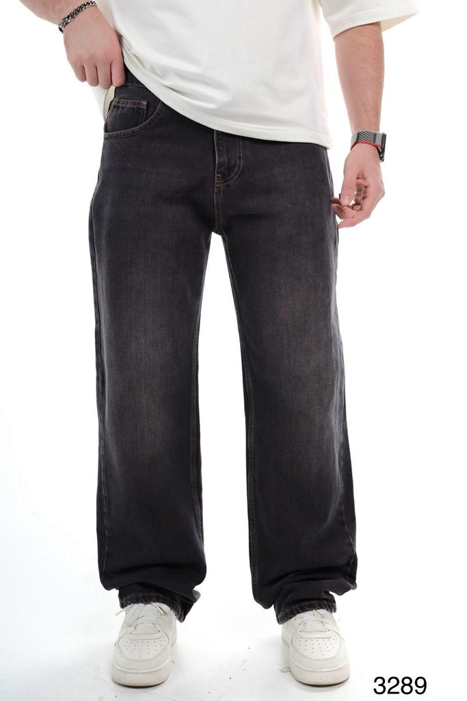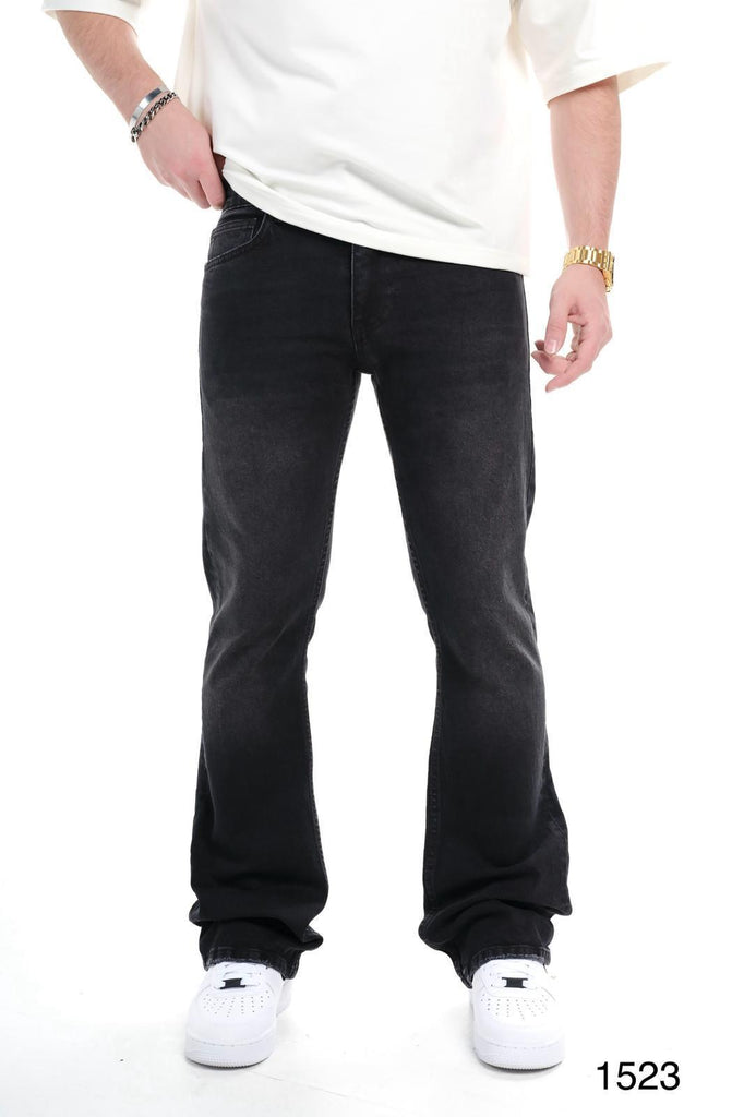 Mens Black Straight Fit Jeans Washed Denim 1025C1523