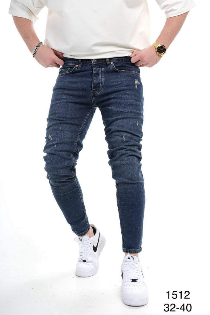 Mens Distressed Skinny Fit Dark Blue Stretch Jeans 0925C1512