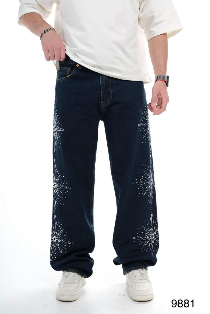 Mens Dark Blue Baggy Jeans With Rhinestone Star Design 0924B9881