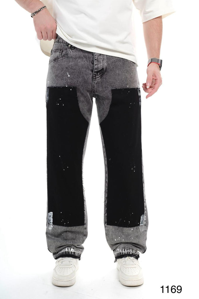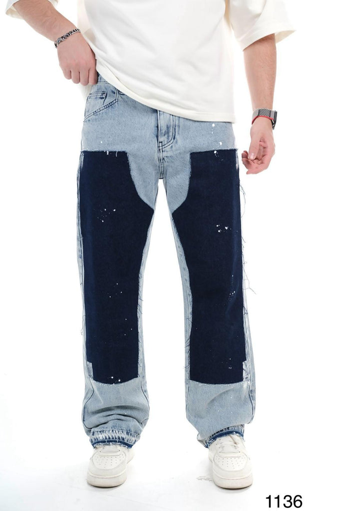 Mens Two Tone Patchwork Baggy Denim Jeans With Paint Splatter 0125C1136