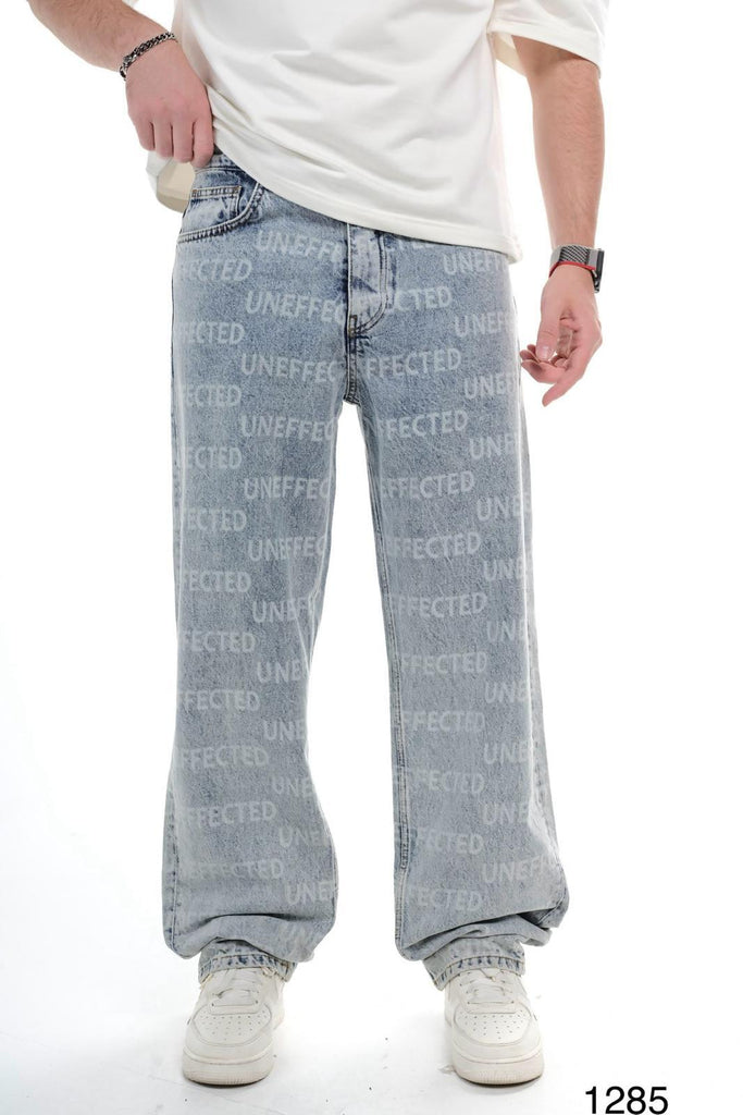 Mens Light Blue Baggy Jeans With All Over Uneffected Print 0325C1285