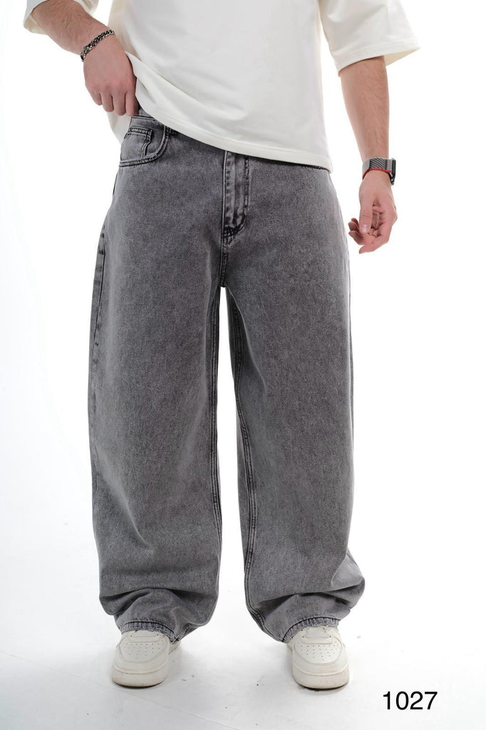 Mens Grey Washed Balloon Fit Jeans Vintage Wide Tapered Denim 1124C1027