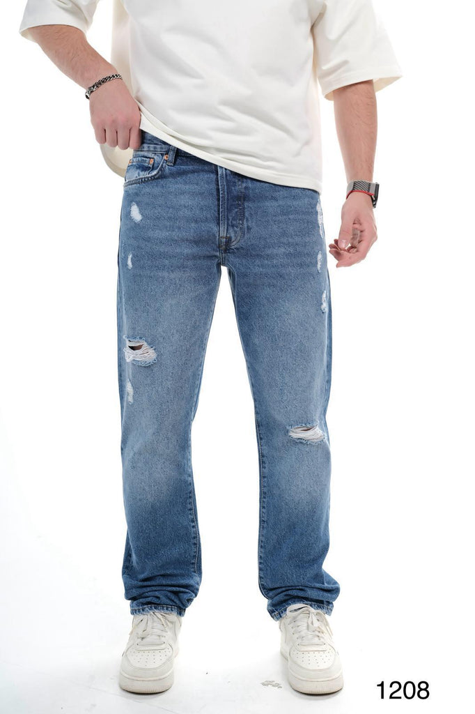 Men’s Heavy Distressed Ripped Straight Fit Denim Jeans 1124ES3246