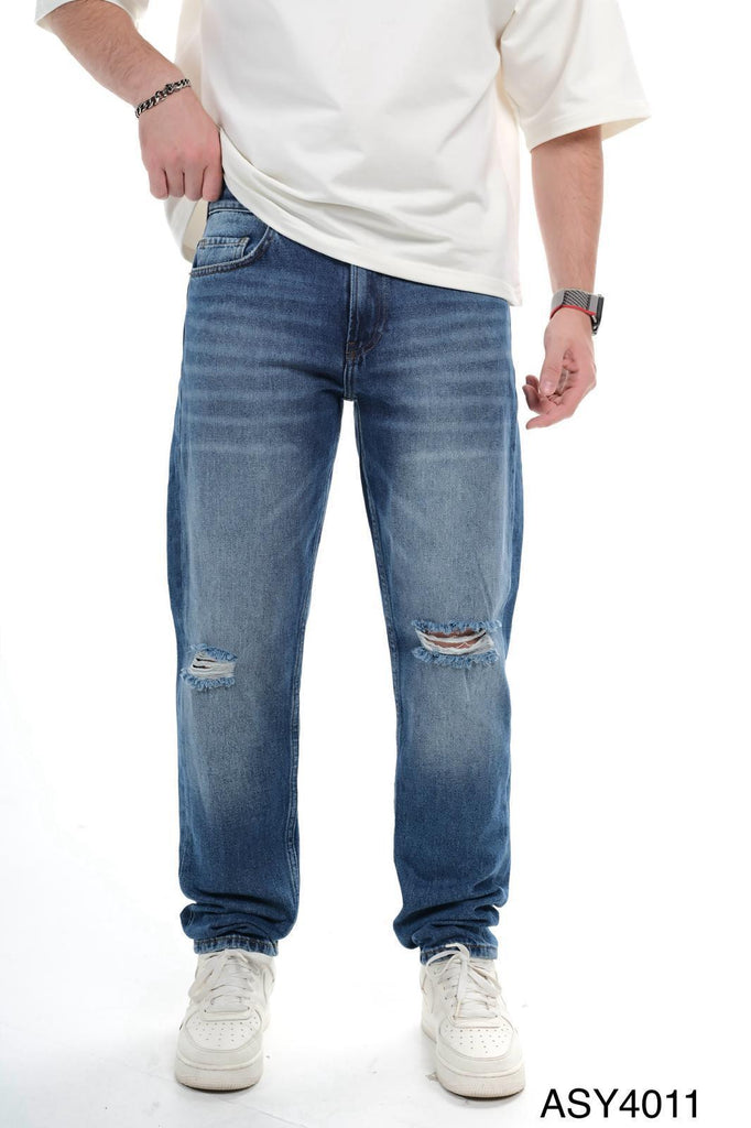 Mens Relaxed Wide Leg Distressed Denim Jeans Blue Logo Back Pocket 0325C1273