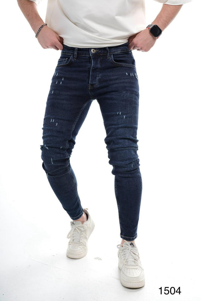 Mens Dark Blue Distressed Skinny Fit Denim Jeans 0925C1504