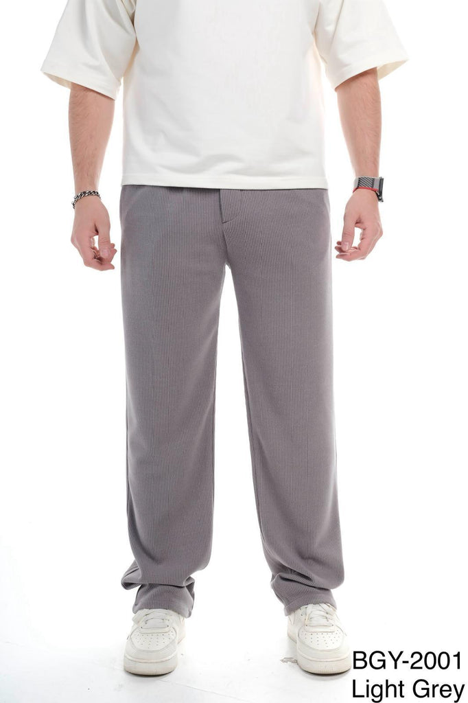 Mens Light Grey Corduroy Straight Fit Pants Soft Stretch
