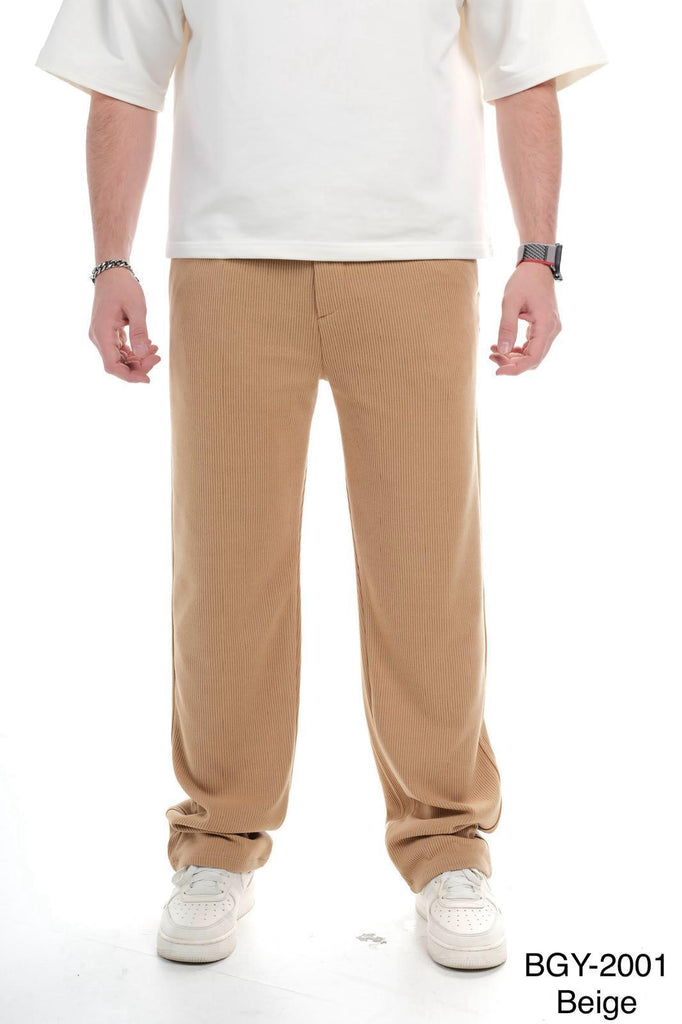 Mens Beige Corduroy Straight Fit Pants Soft Stretch