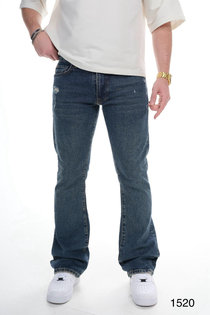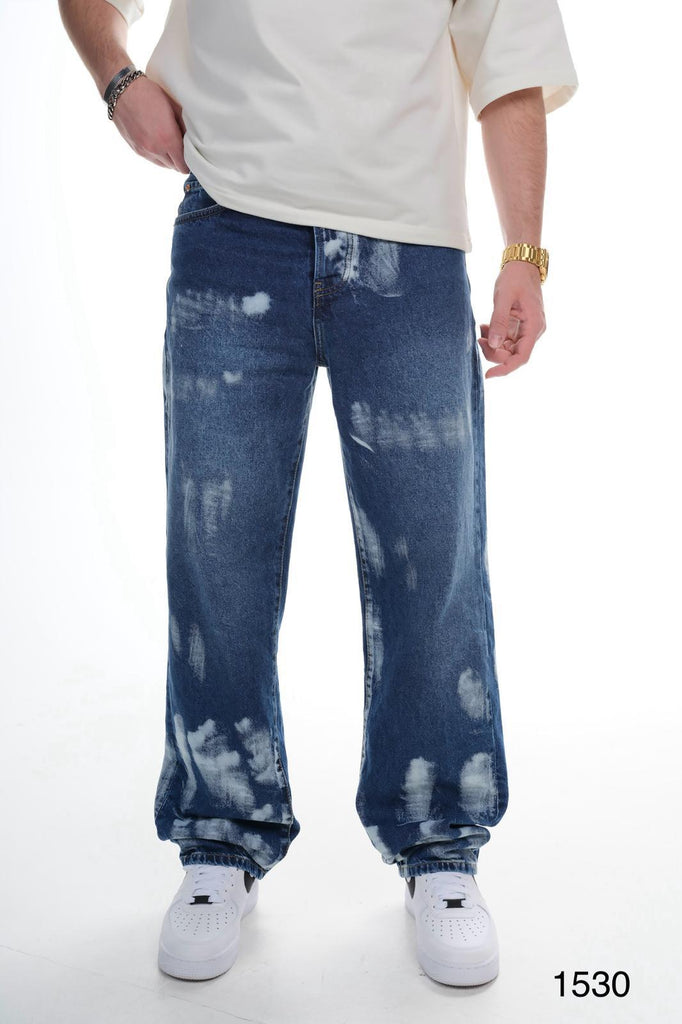 Mens Bleached Effect Wide Leg Denim Jeans Blue Wash 1025C1530