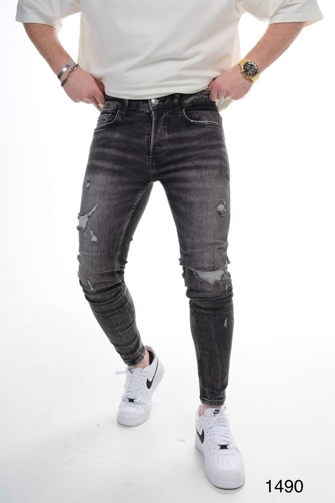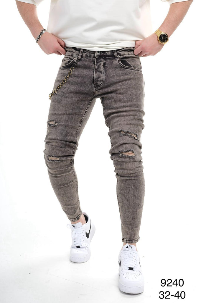 Mens Distressed Skinny Fit Washed Grey Jeans 0224B9240