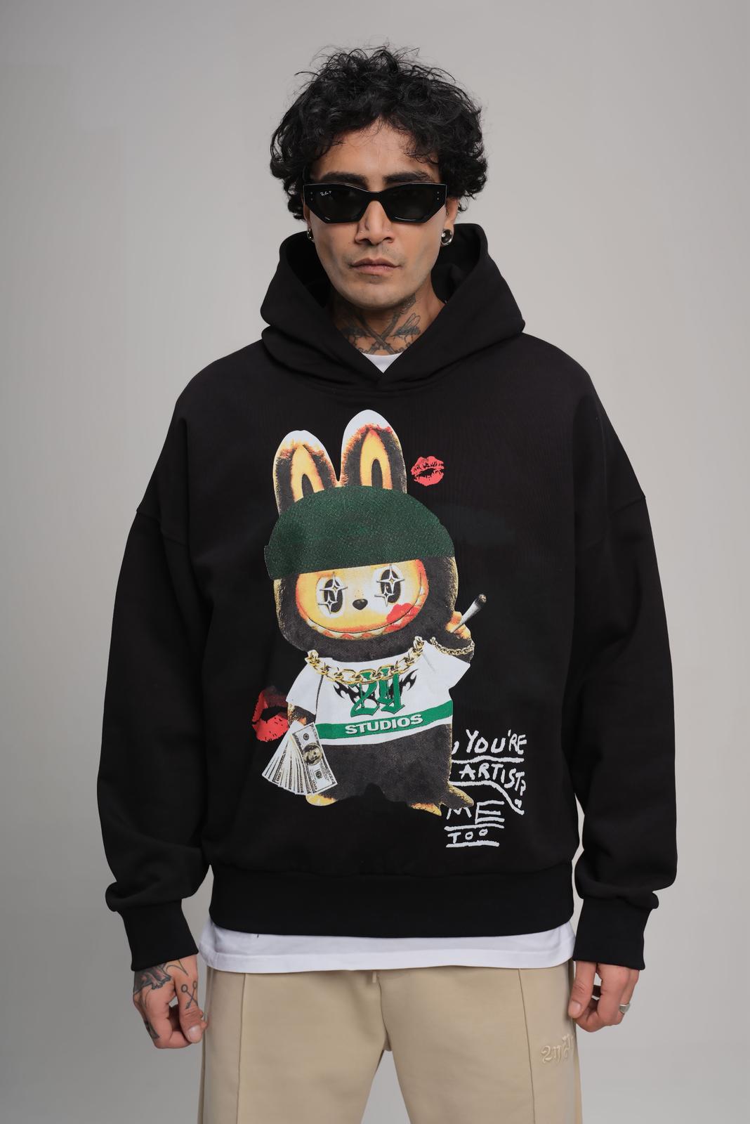 Men's black sweatshirt crafted from 100% cotton.