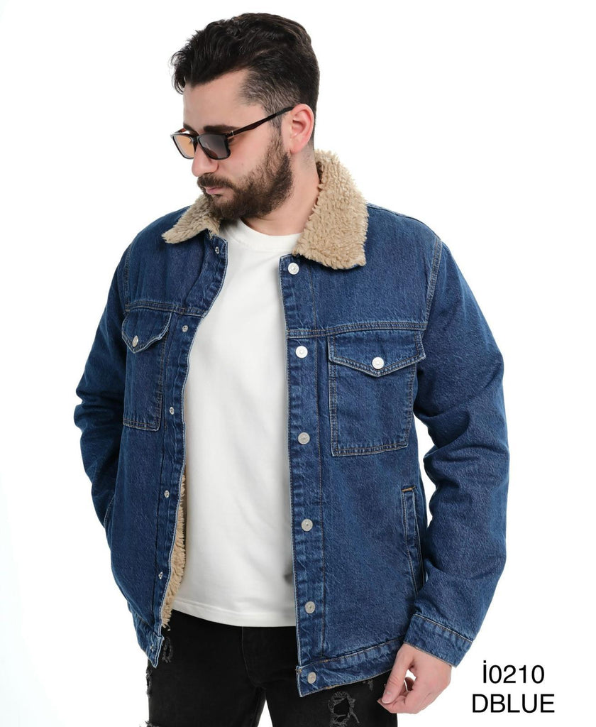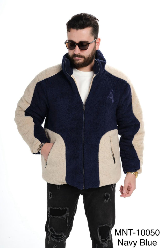 Mens Two Tone Fleece Zip Up Jacket Navy Blue Sherpa Winter Coat 10050