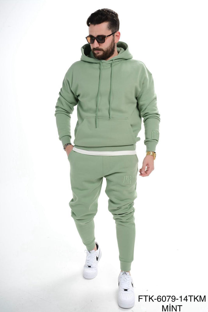 Mens Mint Embossed Hoodie Jogger Tracksuit Set Premium Soft