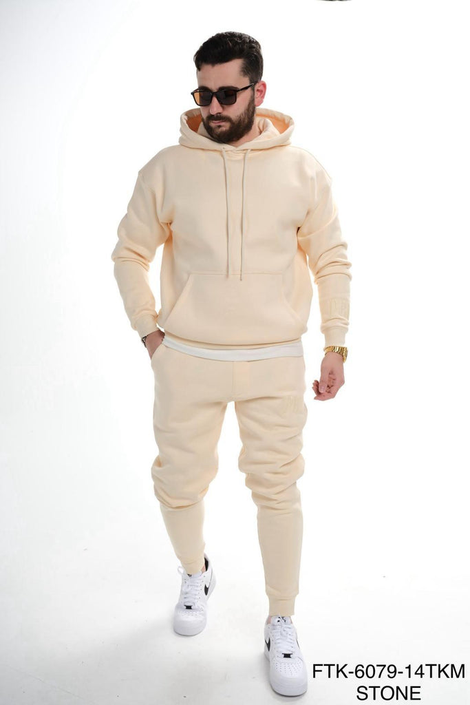 Mens Stone Embossed Hoodie Jogger Tracksuit Set Premium Soft