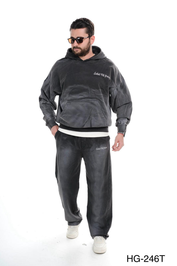 Mens Black Washed Oversize Tracksuit Set Hoodie and Relaxed Fit Pants