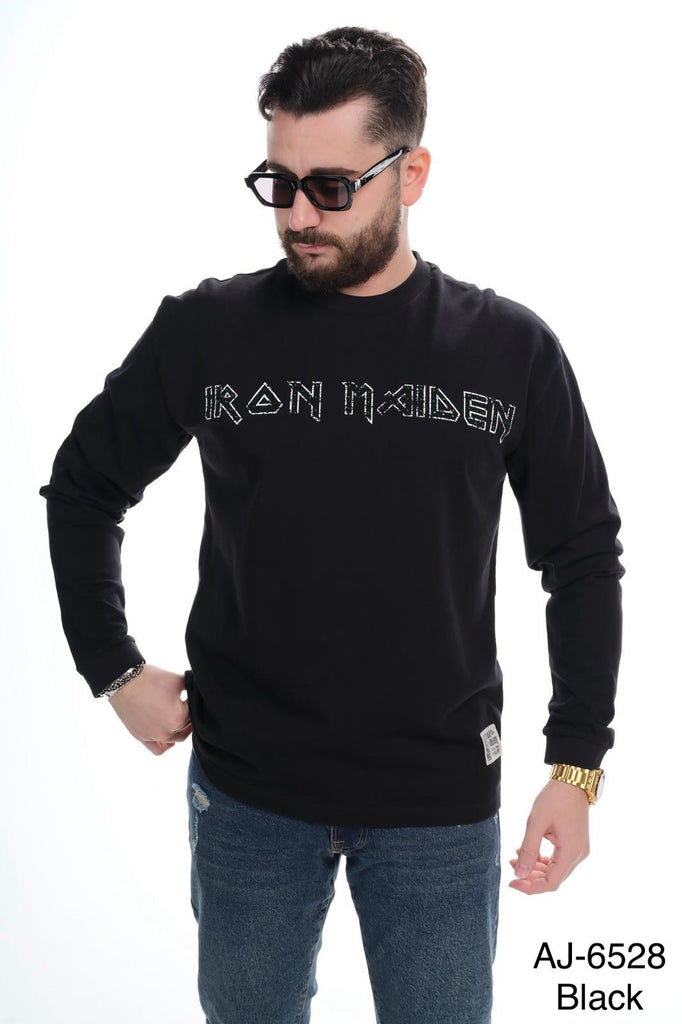 Mens Long Sleeve Crewneck Sweatshirt Black Textured 6528