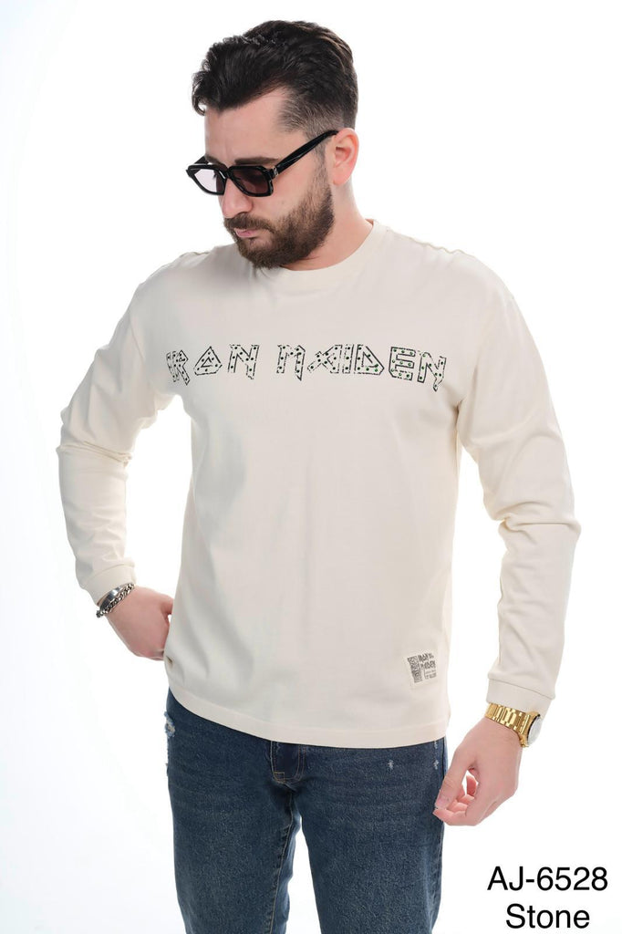 Mens Long Sleeve Crewneck Sweatshirt Stone Textured 6528