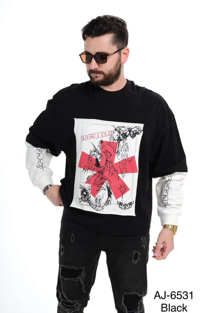 Mens Oversized Graphic Long Sleeve Sweatshirt Black X Print