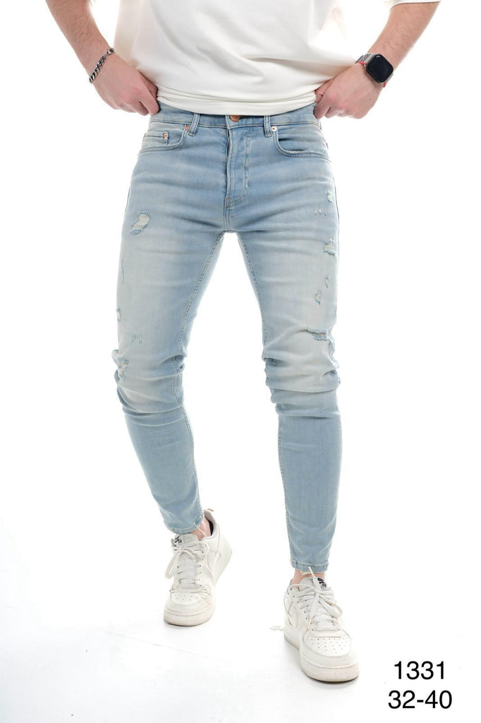 Mens Light Blue Skinny Fit Distressed Denim Jeans 0425C1331