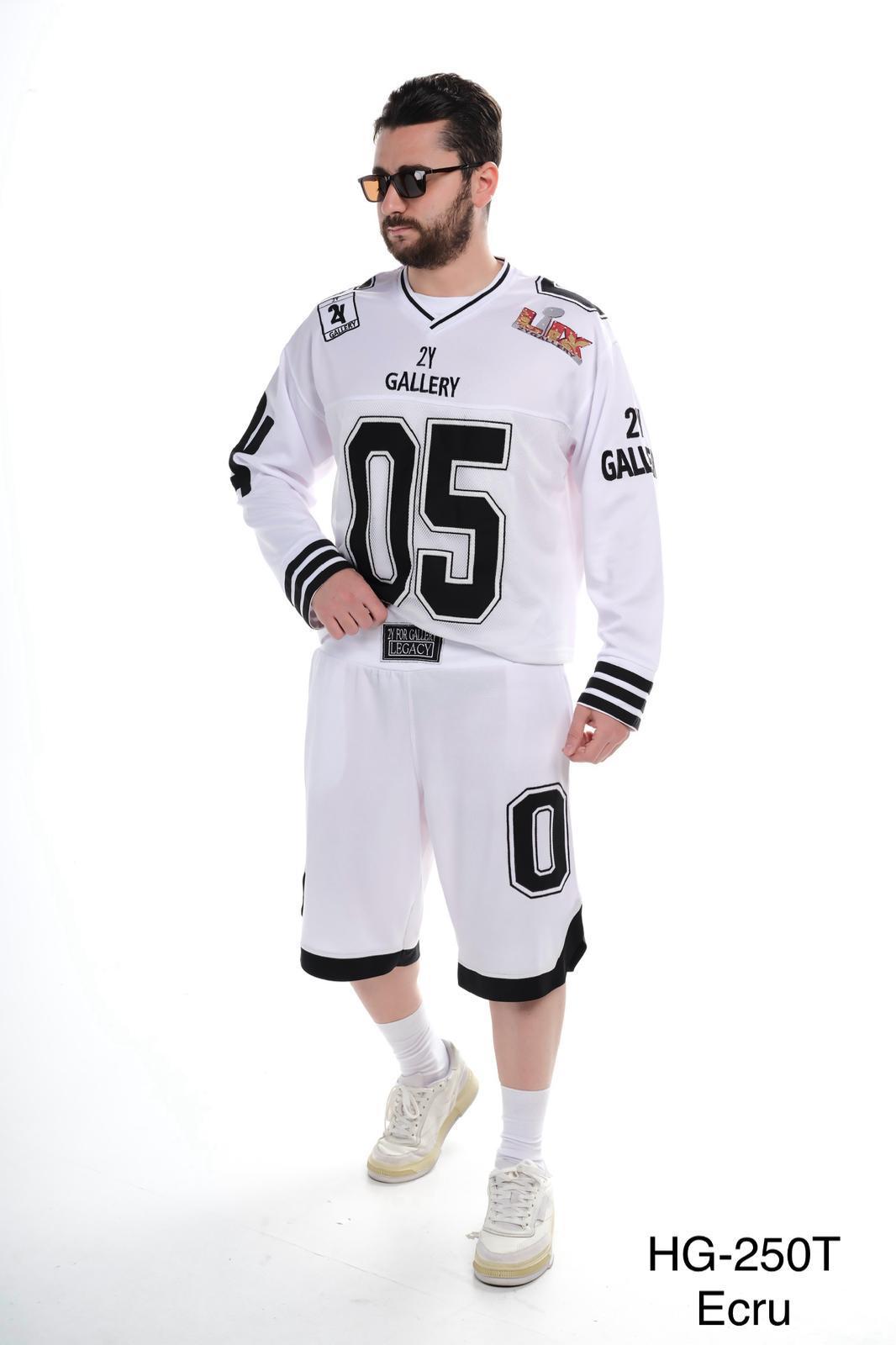 Level up your streetwear game with this Men’s Ecru Sports Jersey & Shorts Set, designed with bold athletic details, oversized comfort, and a premium mesh-textured look. Featuring large varsity numbers, embroidered graphics, and breathable fabric, this set delivers the perfect mix of sport style and modern street fashion.