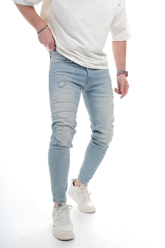 Upgrade your everyday look with these Men’s Light Blue Skinny Fit Distressed Denim Jeans, designed for a modern and clean streetwear aesthetic. Featuring subtle ripped details, a smooth light-wash tone, and a tapered skinny silhouette, these jeans offer a refined yet stylish appearance.